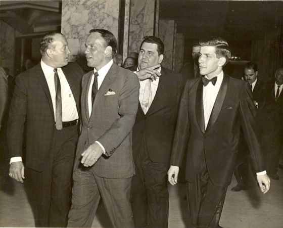 Jilly Rizzo, Frank Sinatra, a bodyguard, and Frank Jr. cut a path at the Sands.